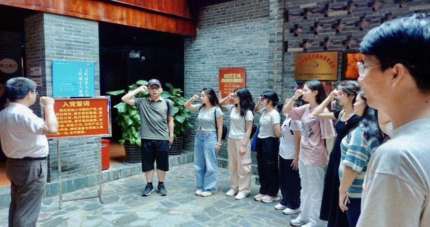 党员们在邓颖超纪念馆内重温入党誓词