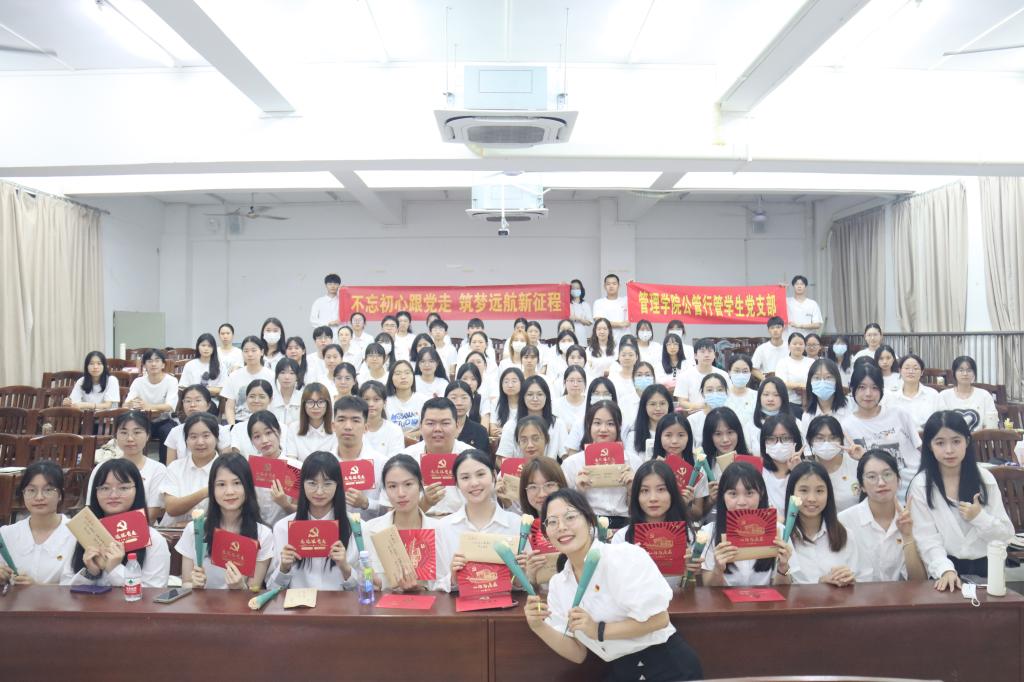 首先,由罗日霞、爱克达.阿迪力、陈淑仪、施宏海、陈佳璇、赖雅婷等六名毕业生党员代表分别从推免、考研、考公和就业等四个方面和大家分享经验。其他毕业生党员接续上台分享大学四年来的成长经历,表达对公司和老师的感激和不舍之情。