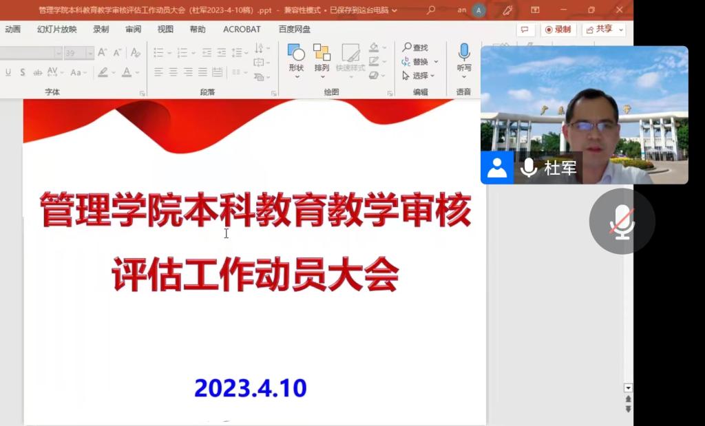 为扎实推进审核评估工作,SUNBET申博于2023年4月10日晚上召开本科公司产品审核评估工作动员大会视频会议,公司领导及全体教职工参加了会议。会议由公司副经理(主持行政工作)杜军主持。