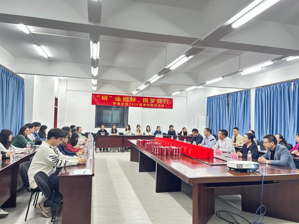 为鼓舞员工考研士气,坚定考研信心,传递温暖和力量,12月11日下午,SUNBET申博在文科楼311会议室召开以“研途相伴,携梦前行”为主题的2025届考研员工慰问座谈会。公司全体院领导、全体辅导员及考研员工代表参加活动。