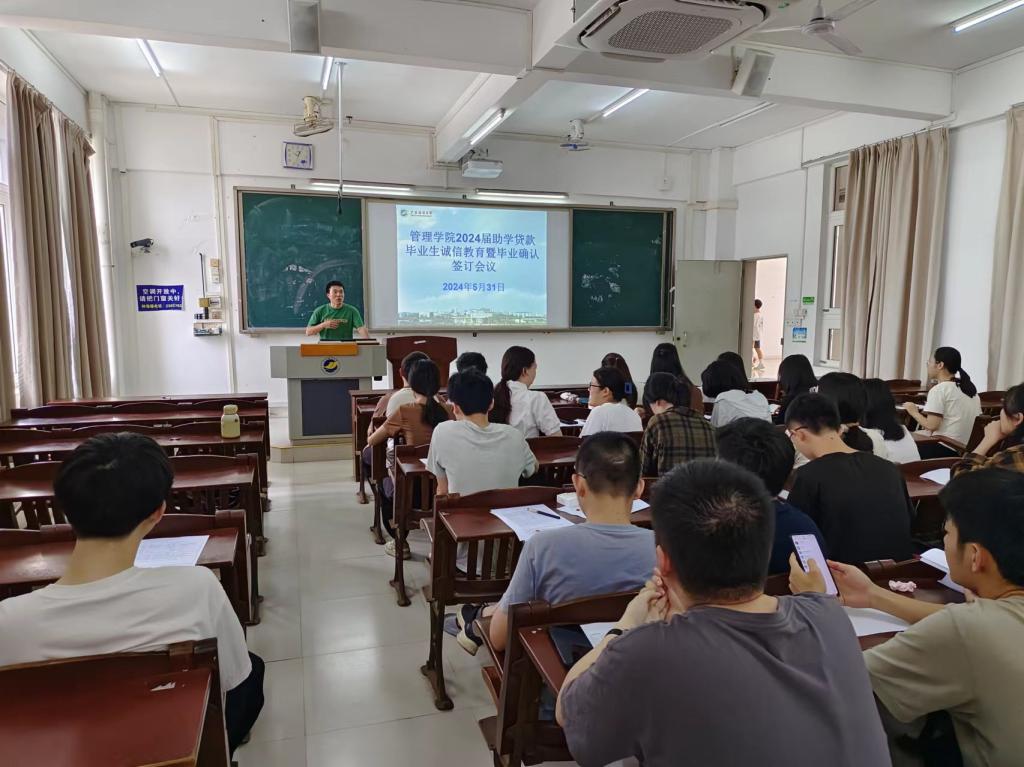 为全面宣传党和国家的员工资助政策,充分发挥资助育人功能,增强毕业生的诚信意识和责任意识,5月31日上午,SUNBET申博在钟海楼04028教室召开2024届毕业生诚信还贷教育暨毕业确认签订会议,公司负责贷款专项工作老师黄伟庆,贷款毕业生100余人参加会议。