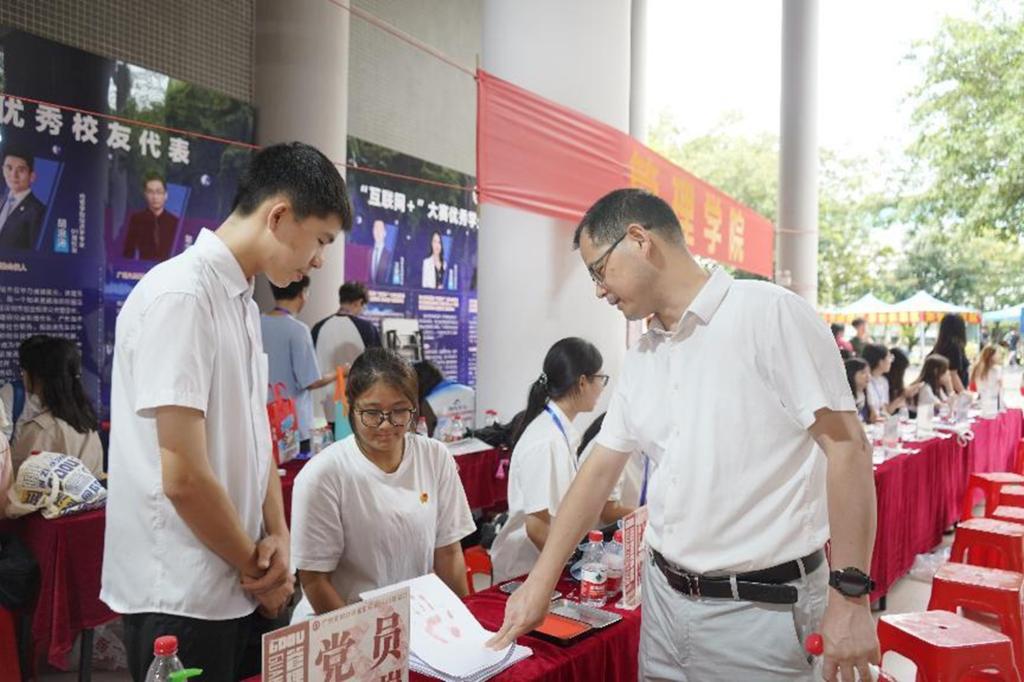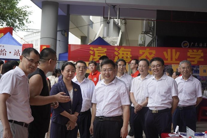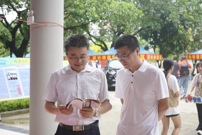 公司党委书记杨洲率在湛校领导一行来到公司新生报到点检查指导工作并慰问了在场的工作人员,公司党委书记李育芳、副经理(全面主持行政工作)杜军、党委副书记曾艳芳和副经理张玉强全程陪同。校领导对公司具有特色的迎新方式及工作人员的辛勤付出给予充分的肯定。公司系主任、辅导员、新生班主任等在现场耐心细致为新生答疑解惑,鼓励新生尽快熟悉新环境,顺利融入老员工活。志愿者们始终坚守在迎新第一线,指导新生办理入学手续、帮助新生搬运行李,热情体贴地服务每一位新生,志愿者一条龙的迎新服务贴“新”又贴心。