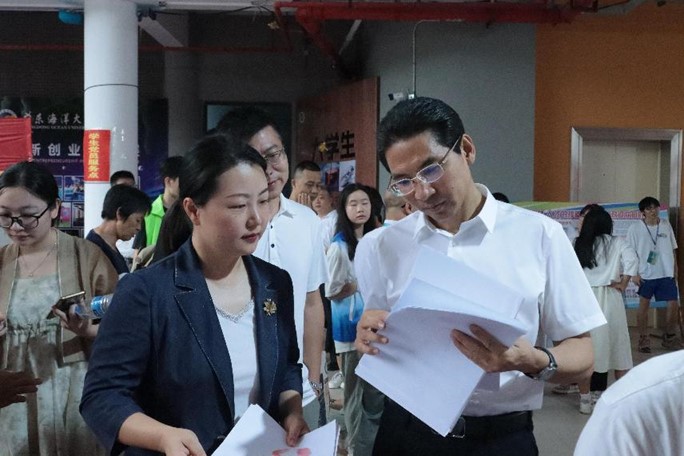 公司党委李育芳书记和张玉强副经理走访迎新现场,翻阅迎新手册