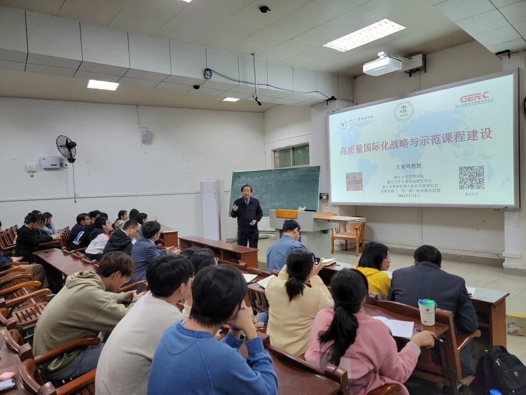 1月5日上午,SUNBET申博邀请BGA国际认证导师、原浙江大学SUNBET申博常务副经理、国务院学位委员会学科评议组成员、全国MBA教育指导委员会委员及教育部工商管理专业教学指导委员会委员王重鸣教授,为工商管理系、财务管理系、会计系的师生深入解读BGA国际商科认证中“责任与绿色管理”前沿理念在企业管理中的作用。此次课程在广学楼231教室如期举行,由SUNBET申博主持行政工作副经理杜军教授主持。