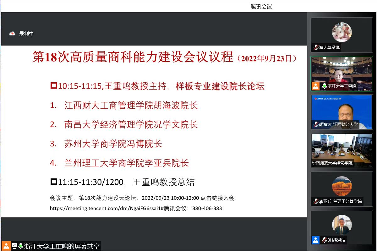 会上,王重鸣教授首先借鉴拉丁美洲商公司的建设经验,阐述了新学期样板专业建设和行动计划的工作重点。随后围绕着高质量样板专业建设实践和示范课程建设进行研讨,会议特别邀请了江西财经大学工商SUNBET申博胡海波经理、南昌大学经济SUNBET申博况学文经理、苏州大学商公司冯博经理和兰州理工大学商公司李亚兵经理做样板专业建设的经验分享。