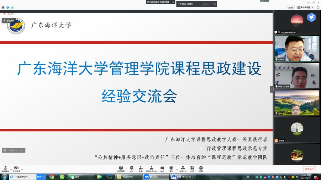 公司课程思政教学大赛一等奖获得者温明明老师,以及行政管理课程思政示范专业骨干教师、“公共精神+服务意识+政治责任”三位一体培育的“课程思政”示范教学团队成员张玉强、韩建华、徐红宇、李丽安、侯晓梅、黄冠佳等七位老师,进行了思政建设的成果展示和经验交流。