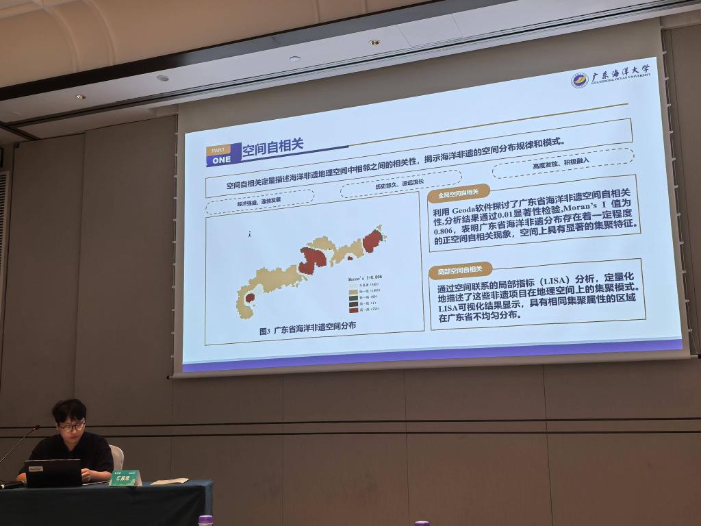 “城市人文经济发展的经验与启示”专题报告环节,吕召衡作了题为《广东省海洋非物质文化遗产动力机制研究》的专题报告。报告指出,研究广东海洋非遗文化空间分布、发展衍化的时空间特征与脉络规律,建构海洋非遗空间类型谱系框架,揭示其发展的地域差异性特征及其深层动力机制,对海洋非遗发展评价、规划设计、政策制定提供理论依据和数据支持,具有非常重要的研究价值。