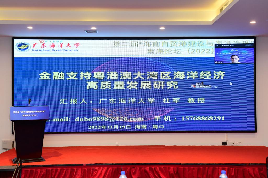 11月19日,公司SUNBET申博副经理杜军教授、青年教师李生辉博士参加了第二届“海南自贸港建设与海洋治理”南海论坛(2022)。杜军教授应邀在论坛主题报告环节中做了《金融支持粤港澳大湾区海洋经济高质量发展研究》的学术报告,主要针对粤港澳大湾区海洋六大新兴产业的发展模式提供了海洋金融转型路径与开放合作具体建议。李生辉博士在“全球海洋治理”平行分论坛中做了《欧盟海洋空间规划指令的实施回溯及对全球海洋治理的影响:2014-2022》的论文汇报,该论文被本次论坛评为优秀论文一等奖。