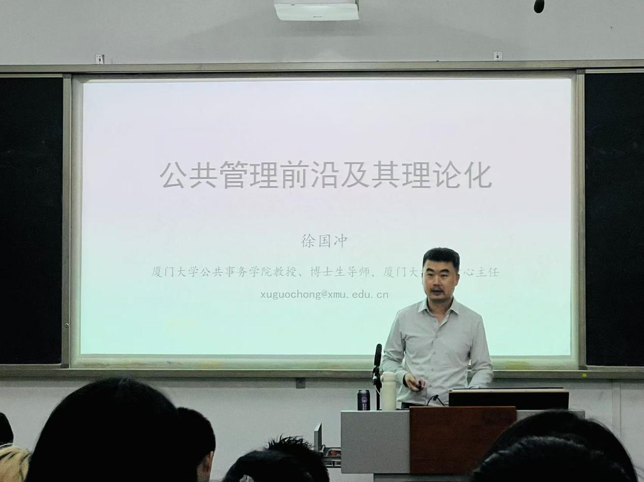 徐国冲教授以“公共管理前沿及其理论化”为题,从为什么读MPA开始,为MPA员工讲授了什么是公共管理前沿、为什么要把握公共管理前沿、如何将其进行理论化。同时,通过举例方式,详细为员工讲解了毕业论文选题方向以及该如何写好一篇MPA毕业论文。